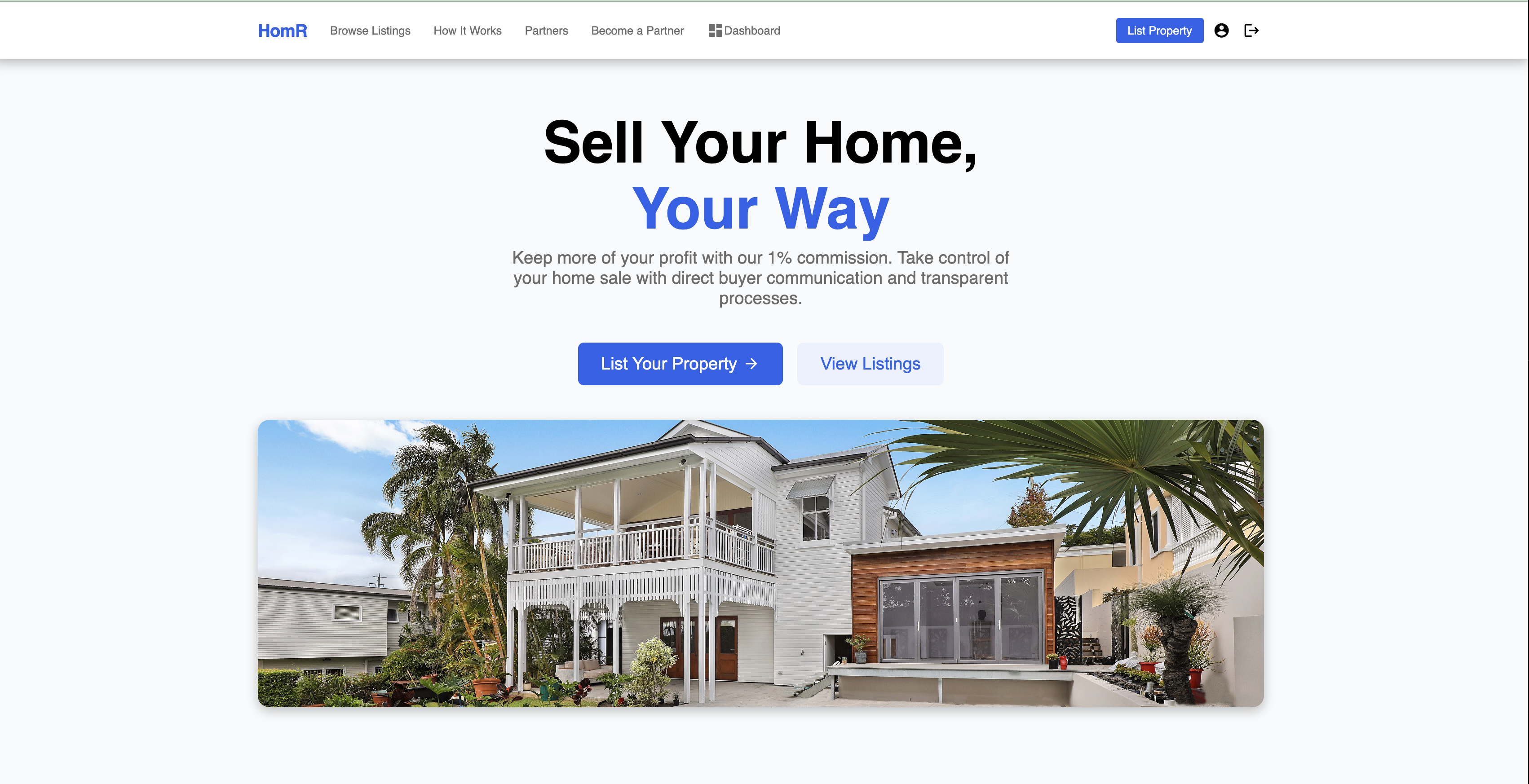 Full-stack real-estate platform for homeowners to list properties, manage offers, and collaborate with service partners.