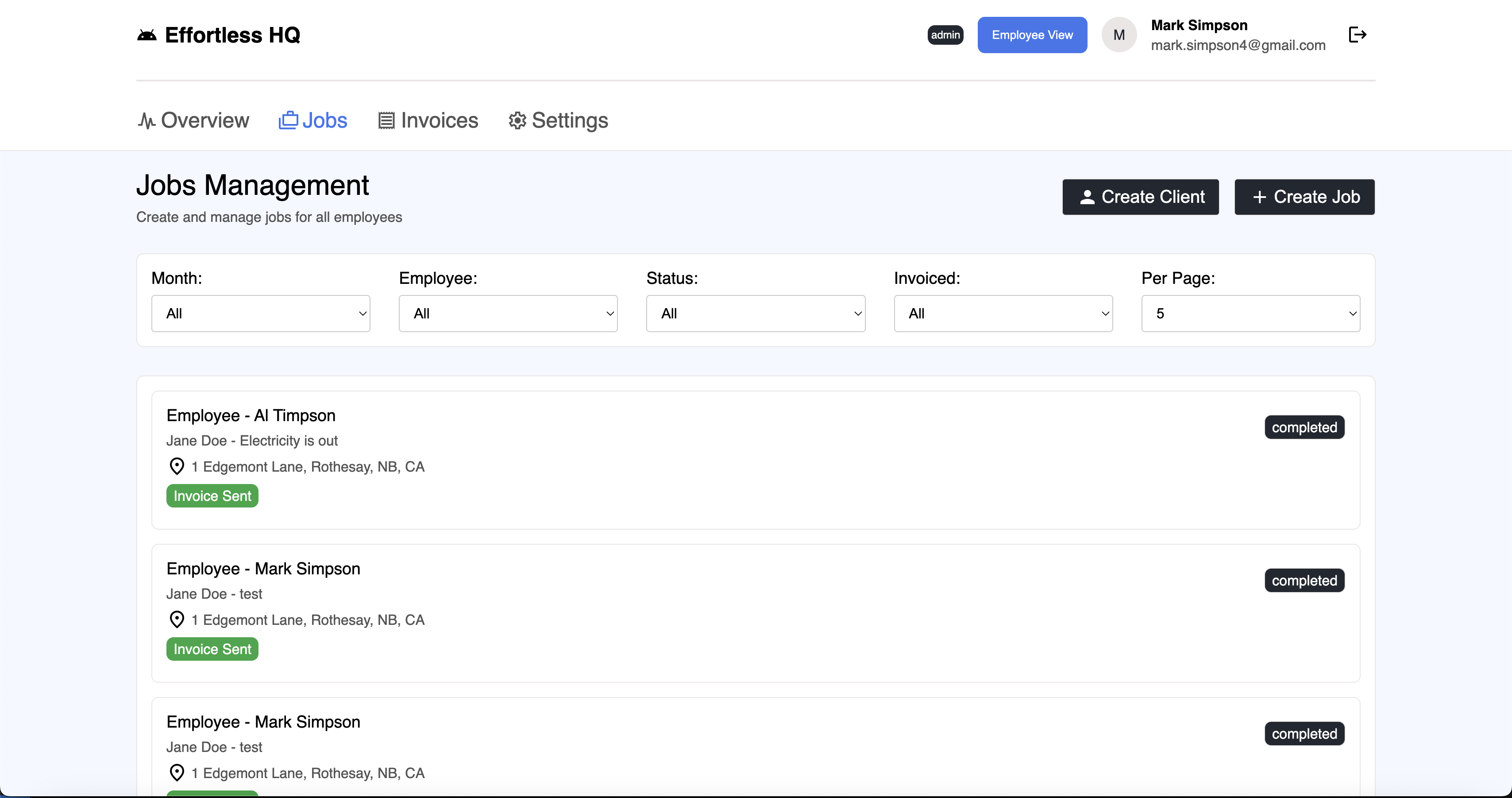 Effortless HQ is a full-stack small-business invoicing platform that automates job completion workflows, invoice creation, and email notifications. The system includes PocketBase authentication, relational data modeling for users, jobs, and invoices, and an admin dashboard for managing teams and operations. Built for real business use, it focuses on clean backend logic, automation, and a simple user-friendly UI.
